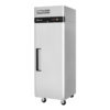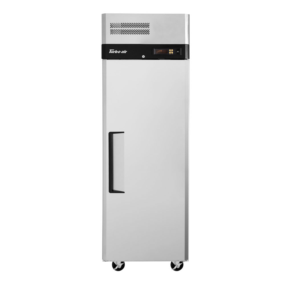 With a digital control system, the Turbo Air M3R24-1-N one-section reach-in refrigerator uses specialized technology to simplify operation. Its Turbo Cool function enables the compressor to run continuously for 2 hours and rapidly cool the cabinet; this feature is perfect for quickly dropping the temperatures in the unit after stocking or unstocking. When the door is opened, an automatic fan motor delay shuts the fan off, so it does not suck warm air into the cabinet. An early warning alarm program senses system issues to help prevent malfunctions, while self-diagnostics interpret the system condition.