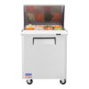 M3 Series Sandwich/Salad-Mega Top Unit, one-section, rear mount self-contained compressor, 8.0 cu. ft., 12-pan top opening with hood, (1) field reversible swing door, (1) PE coated wire shelf, 9-1/2″ deep cutting board with side rail, digital temperature control, self-cleaning condenser, cold bunker system, stainless steel top, front & sides (galvanized steel back & bottom), aluminum interior, stainless steel floor & ABS door liner, LED interior lighting & fan control, R290 Hydrocarbon refrigerant, 1/5 HP, 115v/60/1-ph, 2.8 amps, NEMA 5-15P, cETLus, ETL-Sanitation