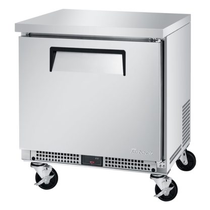 M3 Series Undercounter Refrigerator, shallow depth, one-section, 3.28 cu. ft. capacity, 27″W x 22-1/2″D x 25-5/8″H, self-contained refrigeration, (1) solid door, digital temperature control & monitor system, LED interior lighting & fan control, (1) adjustable polyethylene coated wire shelves, aluminum interior with stainless steel floor, stainless steel exterior, R-600A Hydrocarbon refrigerant, 1/6 HP, 115v/60/1-ph, cord with NEMA 5-15P, 2.4 Amp, ETL-Sanitation, cETLus