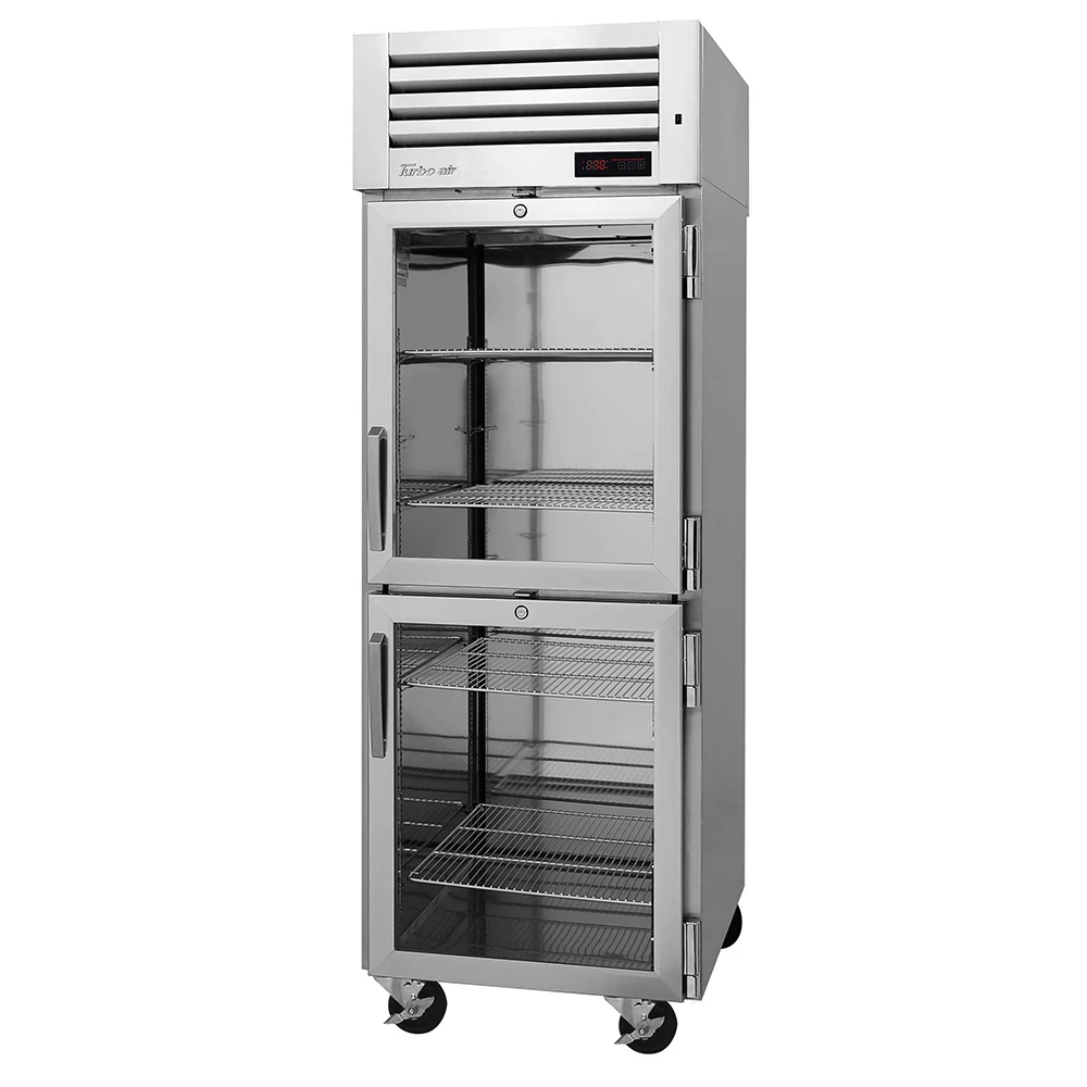 Using its precise digital temperature control and monitoring system, operators can adjust the temperature of the Turbo Air PRO-26-2H-G holding cabinet. To turn the unit on or off, it is equipped with a simple power switch, and the unit’s interior can be accessed through its two glass half doors, which are self-closing with a 120-degree stay-open feature.