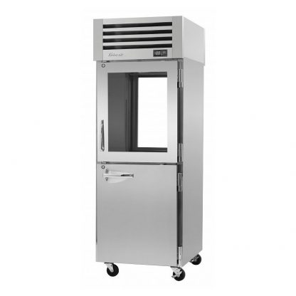 The Turbo Air PRO-26R-GSH-PT-N Pro Series 29″ glass / solid half door pass-through refrigerator is ideal for institutional locations that need a reliable unit with a compact footprint. The pass-through design allows kitchen staff and servers to access food simultaneously, which increases efficiency and decreases production time. A high-tech monitoring system will alert you if a door is open longer than 30 seconds, and precise digital temperature controls give you maximum flexibility and peace of mind to keep your food products fresh and ready to use. Plus, the stainless steel exterior is both durable and easy to clean.