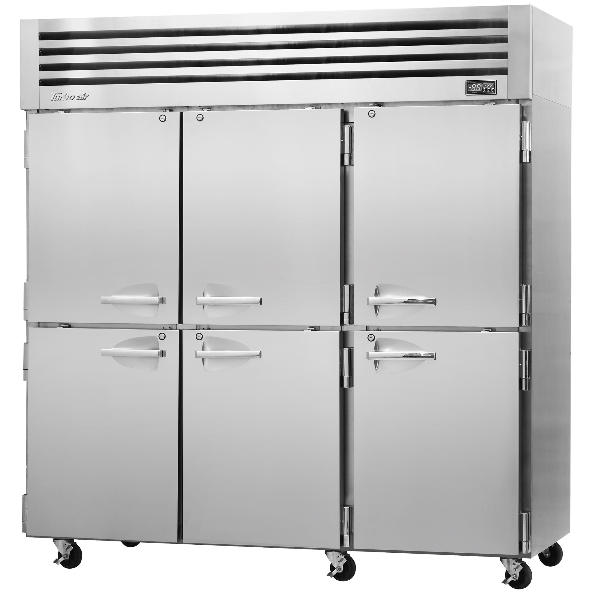 The 66.2 cu ft. Turbo Air PRO-77-6F-N 78″ Premiere Pro Series solid half door reach in freezer boasts precise digital temperature controls for maximum control and food safety! Its stainless steel interior and exterior is durable and easy to clean. The half door design helps maintain interior temperatures and conserve energy since you only need to open one section at a time. Plus, 9 adjustable heavy duty stainless steel shelves make it easy to accommodate a variety of ingredients as your menu changes.