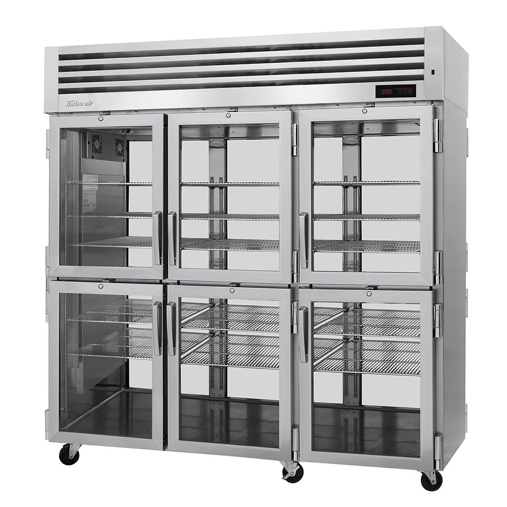 To promote clear visibility, the Turbo Air PRO-77-6H-G-PT pass-thru heated cabinet features LED interior lighting and 12 glass half doors. These self-closing doors preserve heat, yet remain open past 120 degrees to facilitate comfortable loading and unloading. Enabling cabinet access from either side, this unit is a pass-thru model.