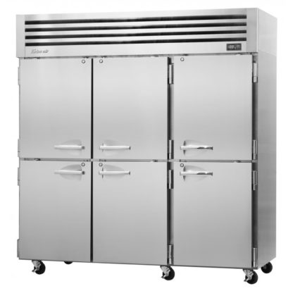 The 66.2 cu ft. Turbo Air PRO-77-6R-N 78″ Premiere Pro Series solid half door reach in refrigerator boasts precise digital temperature controls for maximum control and food safety! Its stainless steel interior and exterior is durable and easy to clean. The half door design helps maintain interior temperatures and conserve energy since you only need to open one section at a time. Plus, 9 adjustable heavy duty stainless steel shelves make it easy to accommodate a variety of ingredients as your menu changes.