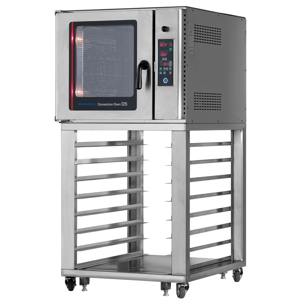 Radiance Convection Oven, Electric, 1 tier, holds 5 trays, European pan size (16″x24″), thermal heat reflecting glass door, precise temperature control, 5 menu saving functions, hot air & steam, bi-directional fan, door switch cutoff for fan, 60 minute timer, stainless steel interior & exterior, included bottom rack for 1 tier only, 220v/60/3-ph, 21 amps, cETLus, ETL-Sanitation