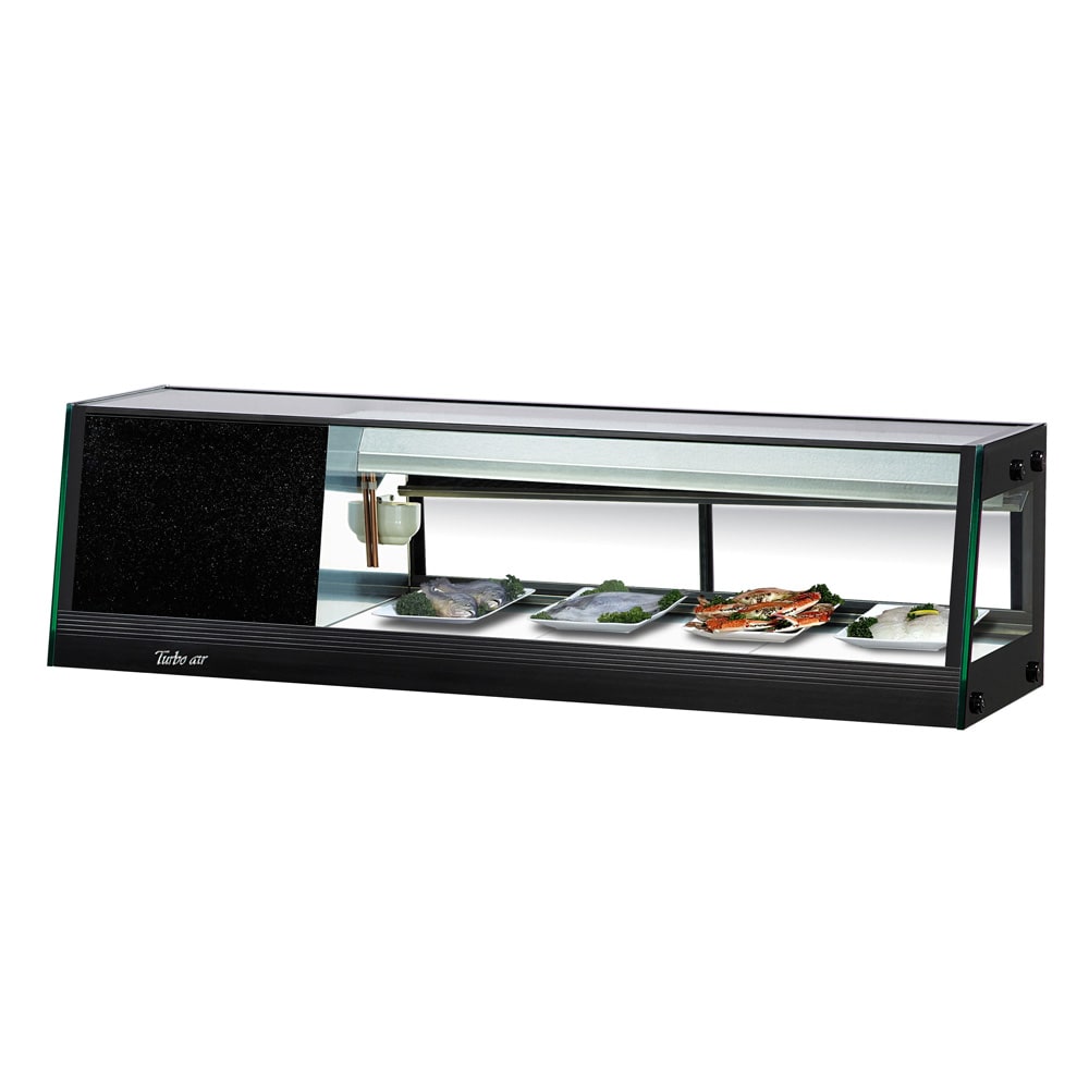 The Turbo Air SAS-50L-N refrigerated sushi case has a sleek black design that looks nice in a variety of settings. Because the refrigeration system is self-contained, after plugging the unit into the wall, it’s ready to go. It cools with R290 refrigerant-a natural hydrocarbon that is good for the environment, and with automatic defrost, any ice that builds up inside is eliminated.