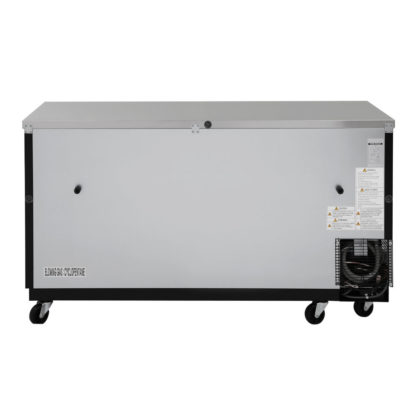 Narrow Back Bar Cooler, three-section, 73-1/8″W x 24-1/2″D x 35-3/8″H, 20.62 cu.ft., self-contained, side mount, front breathing, Easy-to-clean Air-filter equipped, (6) PE coated adjustable shelves, LED interior light, stainless steel countertop & black laminated exterior, stainless steel door liners, stainless steel interior walls & floor, white painted galvanized steel interior top, (3) solid doors with locks, R600a Hydrocarbon refrigerant, 1/5 HP, 115v/60/1-ph, 2.0 amps, NEMA 5-15P, cETLus, ETL-Sanitation