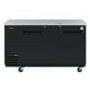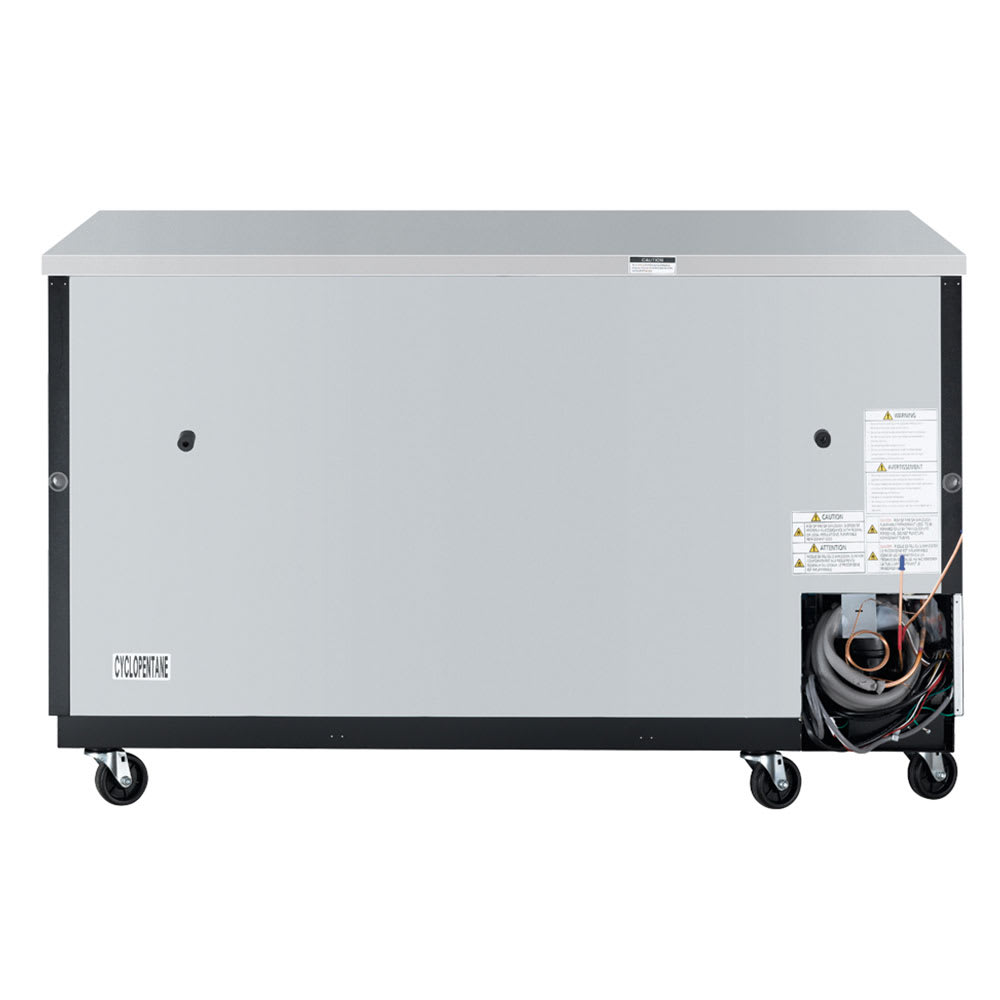Back Bar Cooler, two-section, 69″W x 27-1/4″D x 37-1/8″H, 23 cu.ft., self-cleaning condenser equipped, self-contained, side mount, front breathing, (6) PE coated adjustable shelves, LED interior light, stainless steel countertop & black laminated exterior, stainless steel door liners & interior floor, white powder coated galvanized steel interior top & inside walls, (2) doors with locks, R600a Hydrocarbon refrigerant, 1/5 HP, 115v/60/1-ph, 1.9 amps, cord, NEMA 5-15P, cETLus, ETL-Sanitation, ENERGY STAR¬Æ