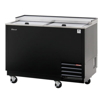 The Turbo Air TBC-50SB-GF-N Super Deluxe two-section glass chiller keeps cups frosted to keep beer, cocktails, and other drinks cold and crisp. The cabinet accommodates (140) 8-inch mugs or (386) 10-ounce steins. Temperatures in the unit remain between -5 and 15 degrees Fahrenheit with the self-contained refrigeration system and hydrocarbon refrigerant. In the cabinet, the contents are cooled quickly since it is a direct cooling type unit. Eliminating dust accumulation on the condenser, the self-cleaning device brushes dust off two to three times a day.