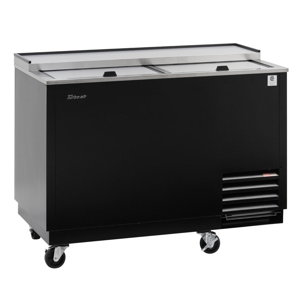 Foamed-in-place polyurethane insultation retains the cold temperatures while creating structure for the cabinet. The lids glide open easily, so staff members can access glasses quickly. There is a stainless steel countertop on the Turbo Air TBC-50SB-GF-N Super Deluxe two-section glass froster, providing durability and resisting corrosion. Thanks to the black exterior finish, the chiller offers a professional feel and fits into most design schemes.