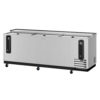 Super Deluxe Bottle Cooler, 95″W, 30.3 cu.ft., self-cleaning condenser equipped, self-contained, (6) PE coated adjustable dividers, built-on removable bottle cap opener & catcher, (3) sliding lids, stainless steel countertop & lids, stainless steel exterior, stainless steel inside walls & floor, galvanized steel interior top, side mount compressor, front breathing, (7) casters standard, R290 Hydrocarbon refrigerant, 1/3 HP, 115v/60/1-ph, 2.5 amps, NEMA 5-15P, cETLus, ETL-Sanitation