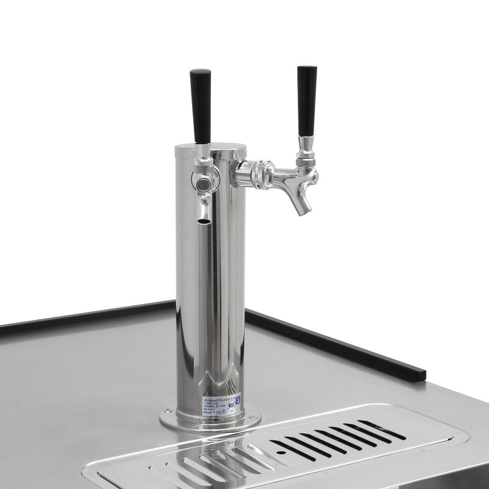 - 3-in.-dia. double-faucet beer tower is insulated and made of stainless steel