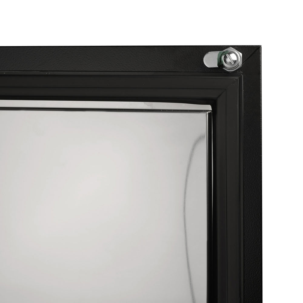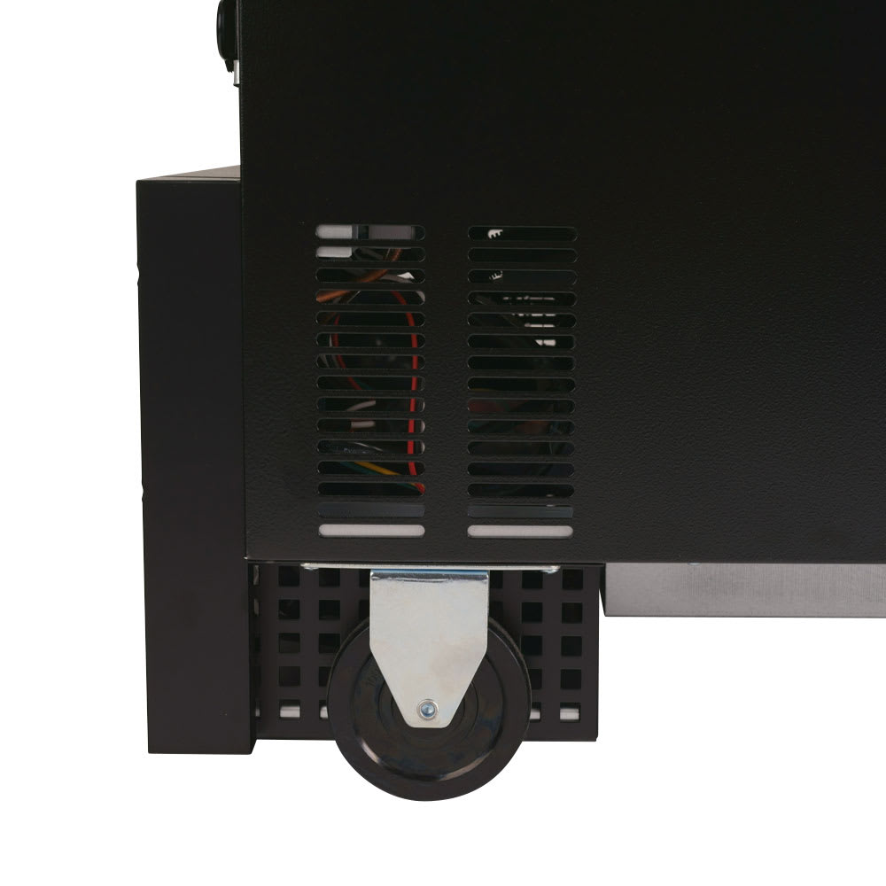 Beer Dispenser, 23-5/8″W, (1) swing door with lock, stainless steel countertop & black laminated exterior, stainless steel inside walls & floor, galvanized steel interior top, (1) 1/2 barrel capacity, (1) 3″ dia. stainless steel insulated beer column with double faucet, door lock, recessed handle, side mount, front breathing, 4″ swivel casters, R600a Hydrocarbon refrigerant, 1/8 HP, 115v/60/1-ph, 1.1 amps, NEMA 5-15P, cETLus, ETL-Sanitation