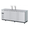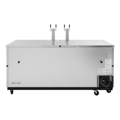 Super Deluxe Beer Dispenser, 90-3/8″W, self-cleaning condenser equipped, (3) swing doors with locks, stainless steel countertop & exterior, stainless steel inside walls & floor, galvanized steel interior top, (4) 1/2 barrel capacity, (2) 3″ dia. stainless steel insulated beer columns with double faucet, door locks, recessed handles, side mount, front breathing, R290 Hydrocarbon refrigerant, 1/3 HP, 115v/60/1-ph, 2.7 amps, NEMA 5-15P, cETLus, ETL-Sanitation, ENERGY STAR¬¨√Ü