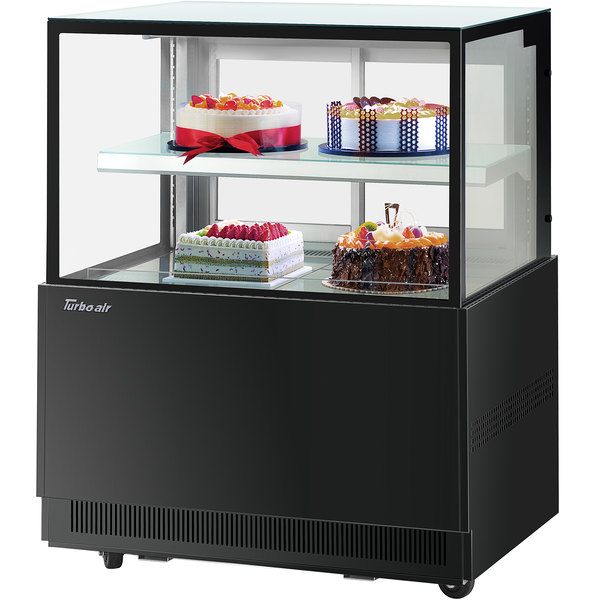 Refrigerated Bakery Display Case, 35-3/8″W x 27-1/2″D x 44″H, 9 cu. ft. capacity, self-contained refrigeration with self-cleaning condenser, straight tempered glass front, tempered glass side pannels, sliding rear doors, digital temperature controller, (1) adjustable tempered glass shelf with stainless steel front & back edges, LED interior lighting, stainless steel interior, specify extior color, 3″ swivel casters (rear locking), R290 Hydrocarbon refrigerant, 1/3 HP, 115v/60/1-ph, 6.3 amps, cord with NEMA 5-15P, cETLus, ETL-Sanitation