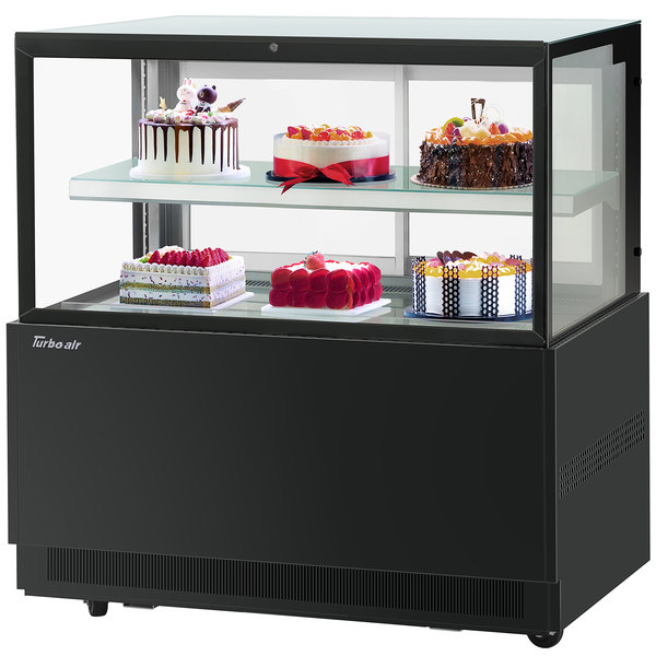 Refrigerated Bakery Display Case, 47-1/4″W x 27-1/2″D x 46-1/4″H, 12.4 cu. ft. capacity, self-contained refrigeration with self-cleaning condenser, straight tilt-out tempered glass front, tempered glass side pannels, sliding rear doors, digital temperature controller, (1) adjustable tempered glass shelf with stainless steel front & back edges, LED interior lighting, stainless steel interior, specify exterior color, 3″ swivel casters (rear locking), R290 Hydrocarbon refrigerant, 1/3 HP, 115v/60/1-ph, 6.8 amps, cord with NEMA 5-15P, cETLus, ETL-Sanitation