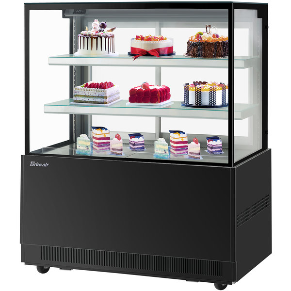 Refrigerated Bakery Display Case, 47-1/4″W x 27-1/2″D x 51-7/8″H, 17.2 cu. ft. capacity, self-contained refrigeration with self-cleaning condenser, straight tempered glass front, tempered glass side pannels, sliding rear doors, digital temperature controller, (2) adjustable tempered glass shelves with stainless steel front & back edges, LED interior lighting, stainless steel interior, specify exterior color, 3″ swivel casters (rear locking), R290 Hydrocarbon refrigerant, 3/4 HP, 115v/60/1-ph, 6.5 amps, cord with NEMA 5-15P, cETLus, ETL-Sanitation
