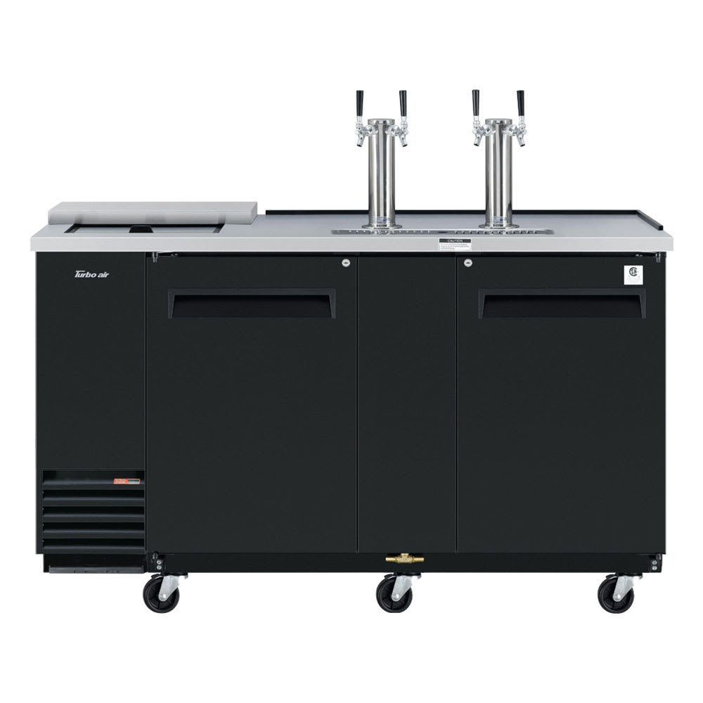 A club top is built into the countertop, so mugs and glasses can be chilled to ensure beer stays cold. There are two beer towers with two faucets on each tower, providing a way to serve more beer. The Turbo Air TCB-3SBD-N6 beer dispenser accommodates three half barrels in the cabinet thanks to its 32-inch-height.