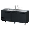 Club Top Beer Dispenser, 90-3/8″W, self-cleaning condenser equipped, (3) swing doors with locks, stainless steel countertop & black laminated exterior, stainless steel inside walls & floor, galvanized steel interior top, (4) 1/2 barrel capacity, (2) 3″ dia. stainless steel insulated beer columns with double faucet, door locks, recessed handles, side mount, front breathing, R290 Hydrocarbon refrigerant, 1/3 HP, 115v/60/1-ph, 2.6 amps, NEMA 5-15P, cETLus, ETL-Sanitation, ENERGY STAR