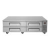 Super Deluxe Chef Base Refrigerator, self-cleaning condenser device, (4) durable drawers with recessed handle, 9.22 cu. ft., (48) pan capacity (1/6 size), 16 ga. stainless steel one-piece reinforced insulated top, stainless steel front & sides, oversized compressor, side mounted self-contained refrigeration system, 5″ casters, R290 Hydrocarbon refrigerant, 1/4 HP, 115v/60/1-ph, 3.4 amps, NEMA 5-15P, cETLus, ETL-Sanitation