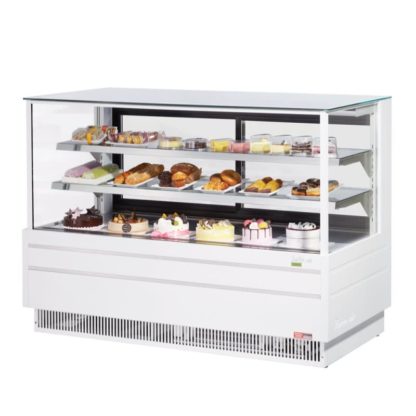 Display Case, refrigerated, 72 1/2″ W, 23.2 cu.ft., 33F – 41F temperature range, self-cleaning condenser device equipped, straight front tempered glass, sliding rear doors, LED interior lighting, (2) adjustable tempered glass shelves, stainless steel floor & air flow grille, white exterior, rear access compressor compartment, R290 Hydrocarbon refrigerant, 3/4 HP, 115v/60/1-ph, 8.6 amps, NEMA 5-15P, CSA-Sanitation, cCSAus