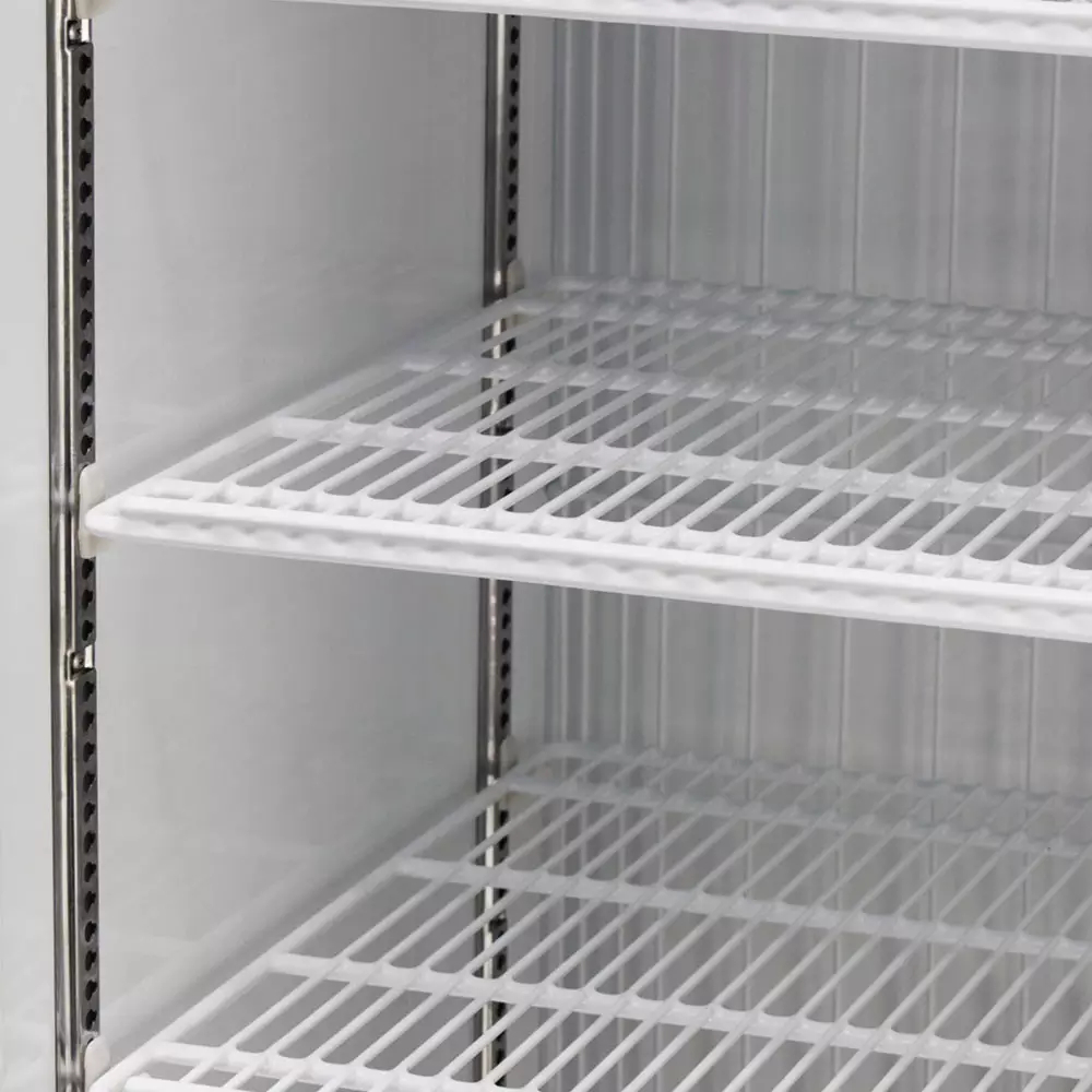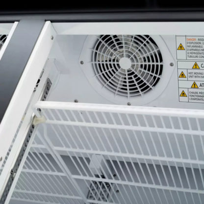 The interior is accessible through two glass doors. Since the glass is triple-paned, outside heat is kept out of the cabinet, and the heated function keeps condensation off the glass. Eliminating cold air leaks, a proper seal is created by the magnetic door gaskets. With the lightweight construction, the doors are easy to open. Cold air is kept in the cabinet since the doors have a self-closing design.