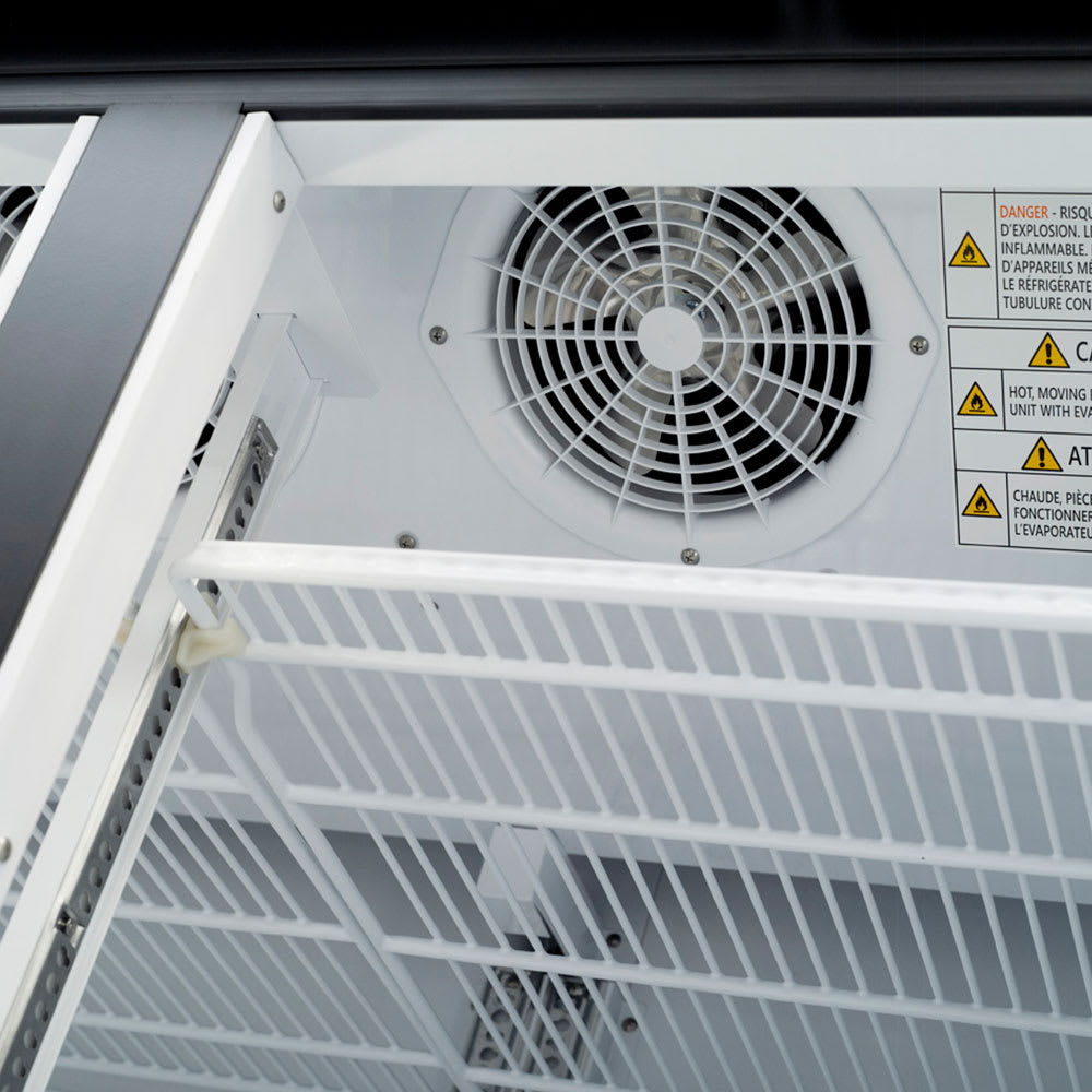 - 2 triple-pane, heated glass doors keep cold air inside while minimizing condensation buildup