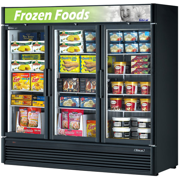Super Deluxe Glass Merchandiser Freezer, three-section, 60.43 cu. ft., self-contained, self-cleaning condenser device equipped, (3) triple pane heated glass doors with locks, (12) adjustable PE coated wire shelves, digital temp. controller, self-diagnostic monitoring system, auto-detect of malfunction & early warning program, automatic fan motor delays, Turbo freezing, solenoid valve, smart defrosting, automatic condenser cleaning function, door open alarm, early warning system, sound system, LED interior lighting, LED LGP advertising panel, white interior, specify exterior cabinet color, bottom mount compressor, R290 Hydrocarbon refrigerant, (2) 2/3 HP, 115v/60/1-ph, 15.7 amps, cord, NEMA 5-20P, cETLus, ETL-Sanitation Note: Nominal cubic footage measurements sometimes provided by refrigeration manufacturers may not indicate actual usable space. If you require a specific capacity, please call one of our customer care representatives to ensure the unit you order meets your needs.