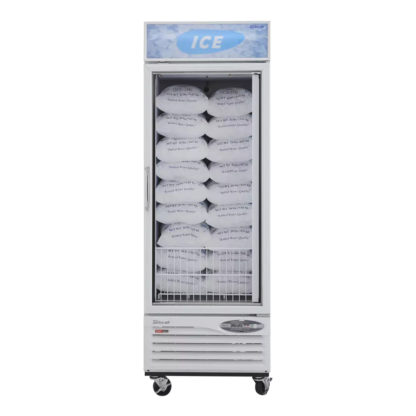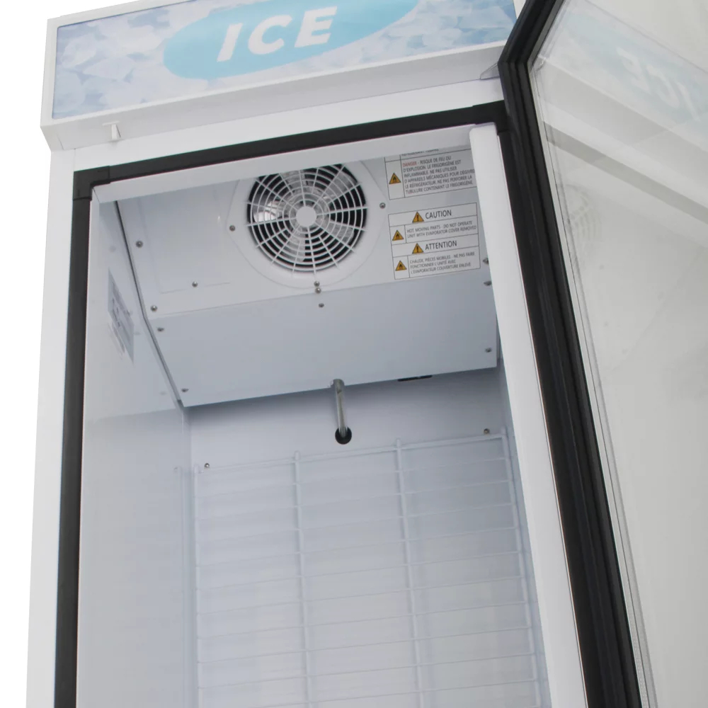 To keep ice chilled and ready for use, the Turbo Air TGIM-23W-N indoor merchandiser is designed with a self-contained refrigeration system that utilizes R290 hydrocarbon refrigerant to keep products chilled between 10 and 15 degrees Fahrenheit. It employs a digital temperature monitoring system to control temperature settings and minimize cold-air loss. Alerting users when a door is left open, the unit’s audible alarm prevents cold air from escaping and enabling the interior to become warm.
