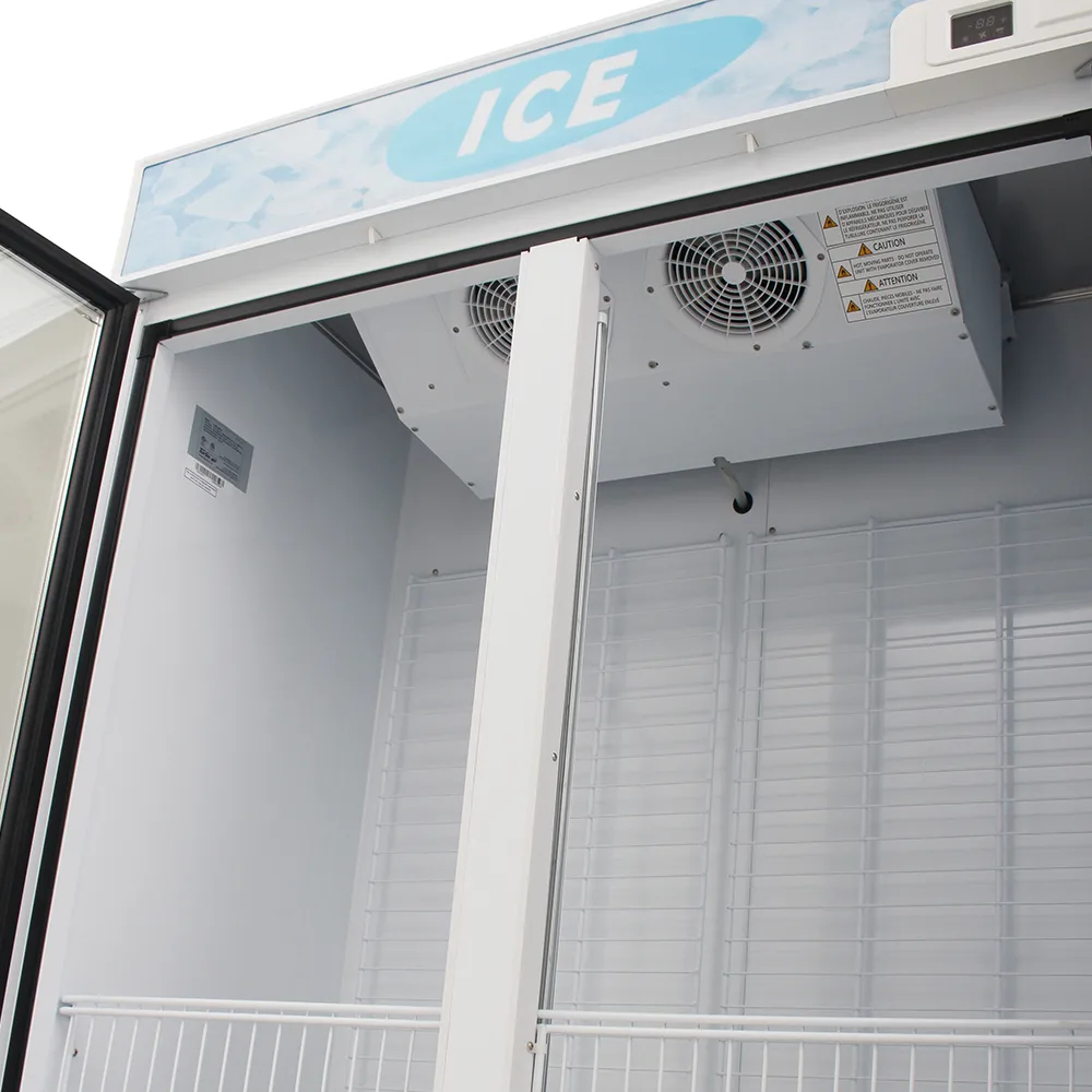 The Turbo Air TGIM-49W-N indoor ice merchandiser makes a good choice for storing and selling bagged ice at locations such as campgrounds, corner stores, and grocery outlets. Turbo freeze functionality enables the merchandizer to quickly chill product as it’s added to the freezer, preventing ice from melting and reducing temperature fluctuations.