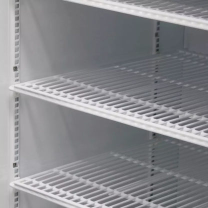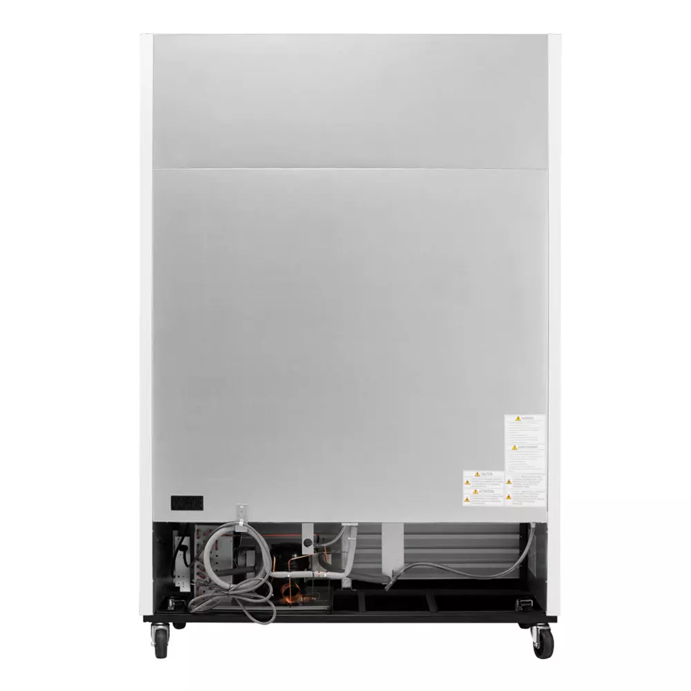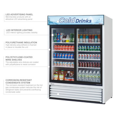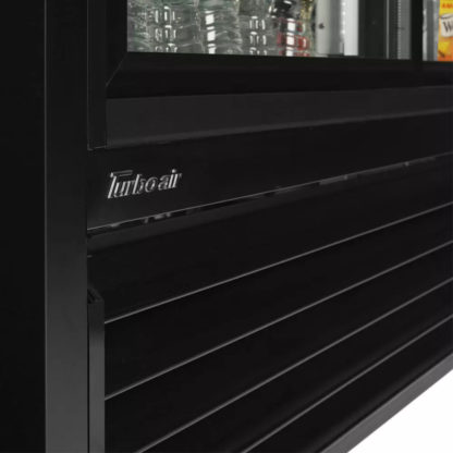 A self-contained refrigeration system, R-290 hydrocarbon refrigerant, and foamed-in-place polyurethane insulation hold beverages at a temperature range of 33 to 38 degrees Fahrenheit. The Turbo Air TGM-48R-N glass door merchandiser’s fan control shuts the motor off if an increase in temperature is detected, such as when the door is opened; this feature helps conserve energy and extends the life of the compressor. The condensate system is corrosion resistant to prevent issues like overflowing water and leaking refrigerant.