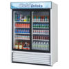 The Turbo Air TGM-48R-N glass door merchandiser holds beverages on eight adjustable wire shelves. The shelves have a polyethylene coating, so they are heavy duty and corrosion resistant. Although the unit can accommodate as many as 560 bottles, it should only be loaded with 448 bottles to allow for proper air circulation. An LED merchandising panel makes it easy to promote the products, while LED lighting illuminates the interior for enhanced product visibility.