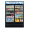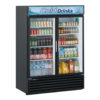 Refrigerated Merchandiser, two-section, 45.97 cu. ft., self-contained, (2) double pane Low-E self-closing swing glass doors, LED interior & canopy lighting, energy conserving fan control, hot gas condensate system, (8) adjustable PE coated wire shelves, black cabinet, bottom mount compressor, R290 Hydrocarbon refrigerant, 1/3 HP, 115v/60/1-ph, 3.1 amps, cord, NEMA 5-15P, ETL-Sanitation, cETLus, ENERGY STAR