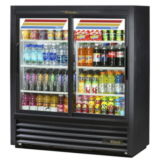 Horizontal Open Display Merchandiser, low-profile, 10.2 cu. ft. capacity, 46-3/4″W x 33-3/4″D x 44-1/4″H, self-contained refrigeration with self-cleaning condenser, rear sliding glass doors, tempered glass front shield & side panels, stainless steel interior, (1) shelf deck, digital electronic thermostat with defrost control, solar digital thermometer, LED interior lighting, specify exterior color, includes night cover, front air intake & rear air discharge, R290 Hydrocarbon refrigerant, (2) 3/4 HP, 115v/60/1-ph, 13.6 amps, cord with NEMA 5-20P, CSA-Sanitation, cCSAus