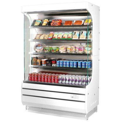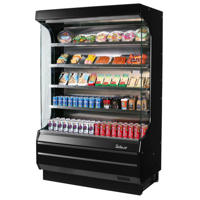 The Turbo Air TOM-50B-N 51″ air curtain merchandiser case keeps contents at safe holding temperatures while letting you increase impulse sales of your most popular foods! Its elegant, glass sided “Euro” design enhances the display of the case, and its interior LED lighting illuminates product for better visibility. The merchandiser features 16.5 cu. ft. of space and 4 stainless steel shelves to hold everything from pre-made sandwiches to bottled beverages or desserts. Stainless steel shelves boast excellent longevity and are superior in durability, perfect for high-traffic convenience stores, airport coffee shops, and other popular business locations.