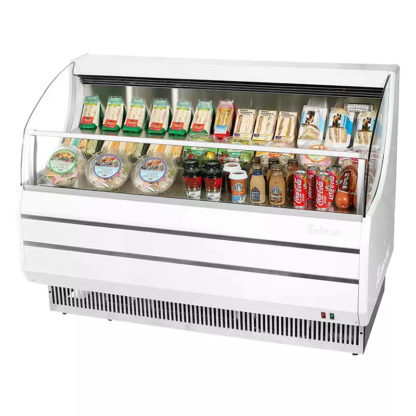 To prevent system breakdowns, the Turbo Air TOM-50SW-N horizontal open air cooler has a self-cleaning condenser that brushes dirt and dust off daily. Its structure is made of stainless steel, which is durable and resists dents and scratches. It is insulated with a polyurethane foam that is high density and CFC free to keep cold air inside. Merchandise can be displayed on the three shelves and LED interior lighting illuminates product for customers. The user can monitor the settings of the unit with the solar powered thermometer and electronic thermostat. For the most efficient operation, the Turbo Air TOM-50SW-N should be fully stocked and installed away from fans, HVAC vents, and doorways.