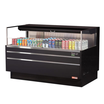 Horizontal Open Display Merchandiser, low-profile, 8.0 cu. ft. capacity, 58-3/4″W x 33″D x 37-3/4″H, self-contained refrigeration with self-cleaning condenser, tempered glass front shield & side panels, stainless steel interior, deck only, digital electronic thermostat with defrost control, solar digital thermometer, LED interior lighting, specify exterior color, includes night cover, front air intake & rear air discharge, R290 Hydrocarbon refrigerant, (2) 3/4 HP, 115v/60/1-ph, 15 amps, cord with NEMA 5-20P, CSA-Sanitation, cCSAus