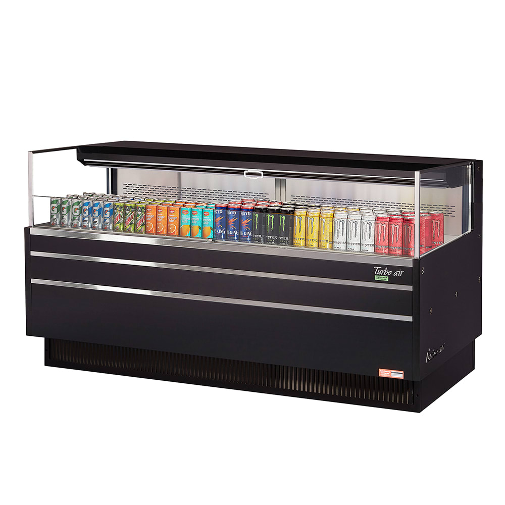Horizontal Open Display Merchandiser, low-profile, 9.7 cu. ft. capacity, 70-3/4″W x 33″D x 37-3/4″H, self-contained refrigeration with self-cleaning condenser, tempered glass front shield & side panels, stainless steel interior, deck only, digital electronic thermostat with defrost control, solar digital thermometer, LED interior lighting, specify exterior color, includes night cover, front air intake & rear air discharge, R290 Hydrocarbon refrigerant, (4) 3/4 HP, 220v/60/1-ph, 13 amps, cord with NEMA 6-20P, CSA-Sanitation, cCSAus