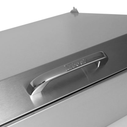 A 191/4-inch-deep cutting board spans the width of the Turbo Air TPR-67SD-D2-N pizza prep table, providing plenty of room for pies of many sizes. A forced air system circulates cold air all around the pans, providing efficient holding of ingredients below 41 degrees Fahrenheit without freezing the sides as cold wall systems sometimes do. This system also creates a shield around the toppings to keep air inside the compartment when the pan cover is lifted.