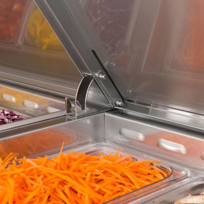 - Insulated pan cover in prep area can be closed to help retain cold air