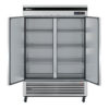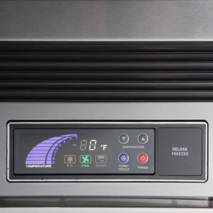 Super Deluxe Freezer, reach-in, two-section, 39.9 cu. ft., self-contained, stainless steel front & side, galvanized back & top of the cabinet, stainless steel interior, (2) solid hinged doors with recessed handles, (6) adjustable stainless steel wire shelves, exterior LED digital thermometer, door-open alarm beeps, self-diagnostic monitoring system, smart defrost, automatic fan motor delays, door pressure release device, LED interior lighting, self-cleaning condenser equipped, door locks, bottom mount compressor, R290 Hydrocarbon refrigerant, 2/3 HP, 115v/60/1-ph, 5.5 amps, NEMA 5-15P, cETLus, ETL-Sanitation, ENERGY STAR®