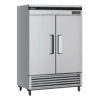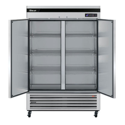 The Turbo Air TSF-49SD-N two-section reach-in freezer comes with six corrosion-resistant shelves. These shelves are durable, easy to clean, and can be adjusted to suit different applications. Constructed of stainless steel, the interior and exterior are heavy duty and resist most scratches and dents. The two doors are easy to open since the pressure relief device eliminates vacuum pressure, and they self-close to keep cold air inside the cabinet. Cold temperatures between -10 and 0 degrees Fahrenheit are maintained with R290 hydrocarbon refrigerant. The operator can monitor the internal temperature with the external digital display.