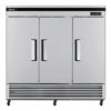 Super Deluxe Freezer, reach-in, three-section, 63.8 cu. ft., self-contained, stainless steel front & side, galvanized back & top of the cabinet, stainless steel interior, (3) hinged solid doors with recessed handles, (9) adjustable stainless steel wire shelves, exterior LED digital thermometer, door-open alarm beeps, self-diagnostic monitoring system, smart defrost, automatic fan motor delays, door pressure release device, LED interior lighting, self-cleaning condenser equipped, door locks, bottom mount compressor, R290 Hydrocarbon refrigerant, 3/4 HP, 115v/60/1-ph, 6.5 amps, NEMA 5-20P, cETLus, ETL-Sanitation, ENERGY STAR®