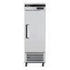 The Turbo Air TSR-23SD-N6 single-section reach-in refrigerator has a stainless and galvanized steel exterior that is heavy duty to withstand commercial use. The interior, along with three shelves, is also constructed of stainless steel for ease of cleaning and corrosion resistance. Products stored in the unit are visible with LED interior lights. To make it easy to clean under the unit, it has 4-inch-diameter swivel casters. Its door has a pressure release device that eliminates vacuum pressure to make it easy to open. Magnetic door gaskets prevent cold air leaks.