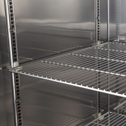 Temperatures are brought down to ideal temperatures when the door has been open for an extended period with the rapid cool down function. Self-diagnostics run throughout the day to reduce the risk of system failure and alert the operator of issues before they occur. When the door is opened, the evaporator fan stops to keep warm air from being drawn into the cabinet. The Turbo Air TSR-23SD-N6 one-section reach-in refrigerator sounds an alarm when the door is not shut properly to help reduce spoilage.