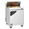 Equipped with a 9 1/2″ wide cutting board and a stainless steel wire shelf, this prep table provides ample work space and storage. This unit also comes with 8 standard 4″ deep (1/6 size) condiment food pans for the top section to keep your ingredients organized and easily accessible. Salad / sandwich prep tables make it easy to keep your refrigerated ingredients close by as your staff works to assemble made-to-order salads, subs, and sandwiches.