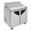 There are 10 pans in the top compartment and two stainless steel shelves in the cabinet that hold product. Access to the cabinet interior is created through two swing doors, and visibility is provided by LED lights. A full-length cutting board can be used as an area to prepare ingredients and meals. Constructed of stainless and galvanized steel, the exterior withstands heavy use, while the stainless steel interior is simple to clean when messes are made. The Turbo Air TST-36SD-N6 prep table retains cold air with foamed-in-place polyurethane insulation.