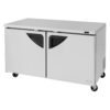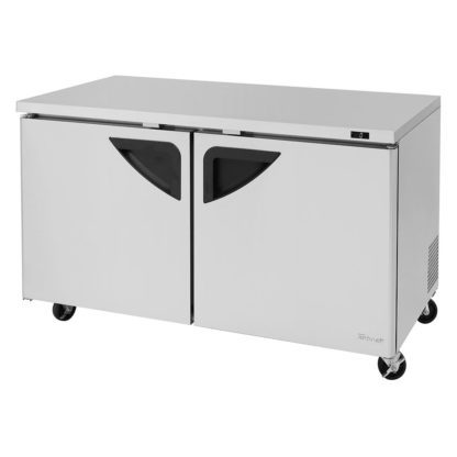 Ergonomic handles make it easy to open the doors, and the doors have a self-closing feature to keep cold air in the cabinet. ABS sheet door liners have thermal efficiency to resist water condensation. Since the Turbo Air TUF-60SD-N Super Deluxe undercounter freezer has 4-inch swivel casters, it is easy to move for cleaning and servicing; the front set locks to keep the unit in place. Made of stainless and galvanized steel, the exterior is durable to withstand commercial applications.