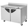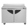 Operators can control the Turbo Air TWF-28SD-D2-N Super Deluxe work top freezer’s LED interior lighting and fan. This unit holds products at temperatures from -10 to 0 degrees Fahrenheit and has a 12-cubic-foot interior capacity. Overall, the freezer measures 481/4 inches wide, 31 inches deep, and 381/2 inches high. Its evaporator is coated to defend against corrosion and the self-contained system facilitates placement. This unit stands on 4-inch-diameter swivel casters that can lock it in place for stationary applications.