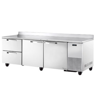 Super Deluxe Worktop Refrigerator, two-section, 12.0 cu. ft., self-cleaning condenser equipped (1) stainless steel door with recessed handle, (1) stainless steel shelf, (2) stainless steel drawers with recessed handles, stainless steel interior & exterior, self-contained rear mounted refrigeration system, R290 Hydrocarbon refrigerant, 1/5 HP, 115v/60/1-ph, 2.4 amps, NEMA 5-15P, cETLus, ETL-Sanitation